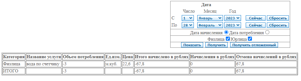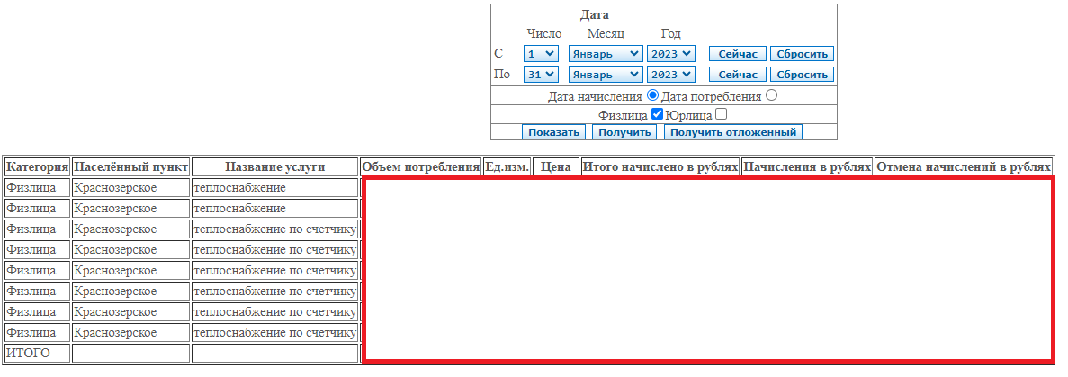 Информация о начислениях в разрезе населённых пунктов и услуг