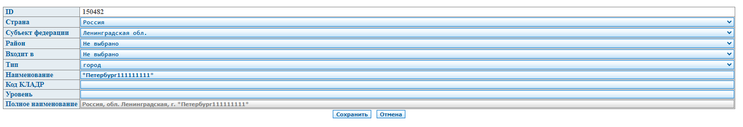 - Полное наименование - какая адресная строка соответствует сейчас данной записи о населённом пункте