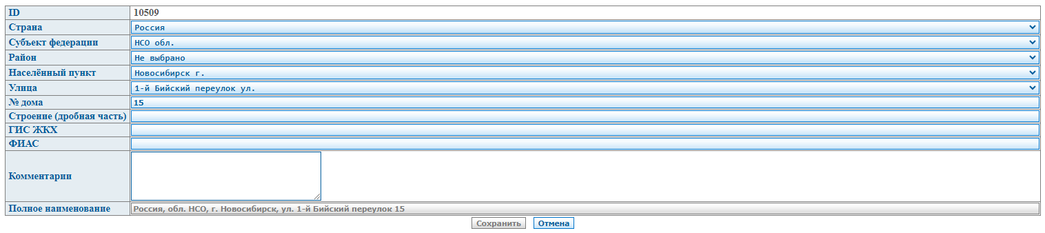 - Полное наименование - какая адресная строка соответствует сейчас данной записи о доме