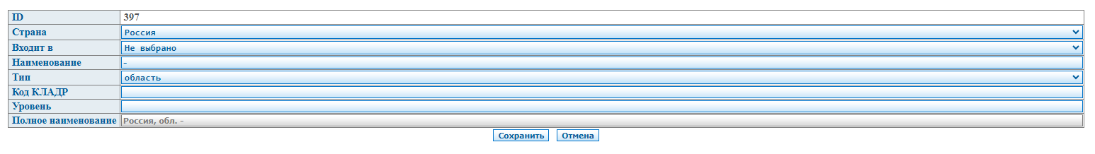 - Полное наименование - какая адресная строка соответствует сейчас данной записи о регионе
