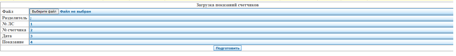 Загрузка показаний счетчиков