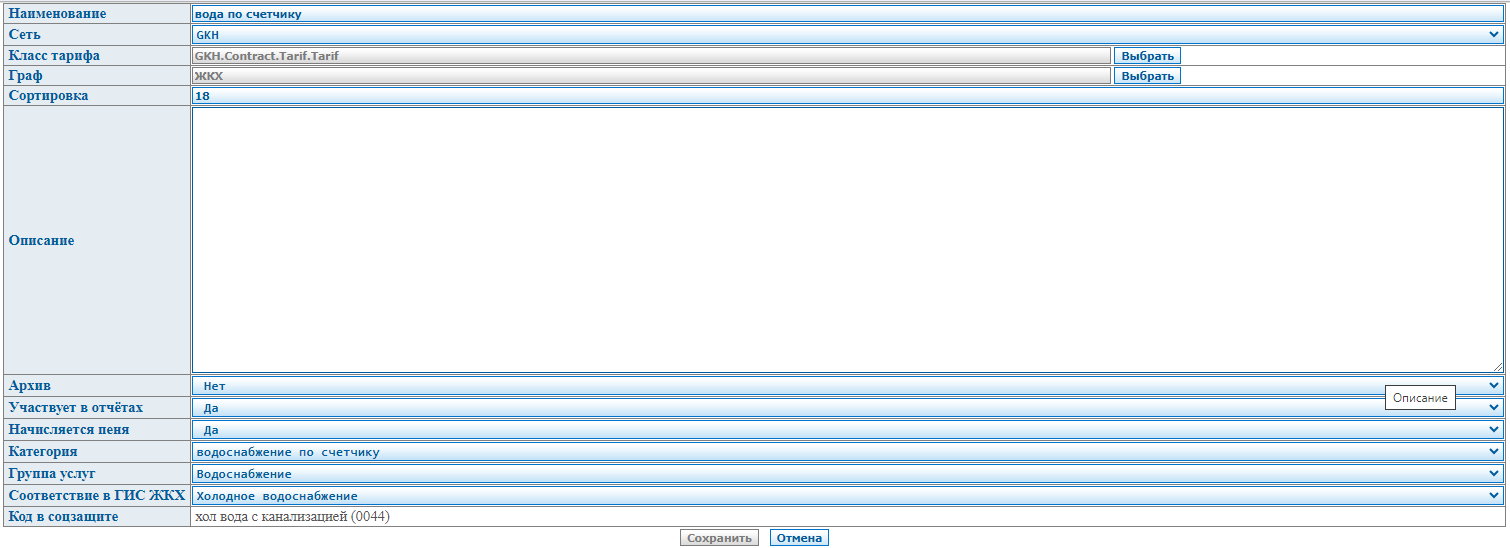 Интерфейс отображает список услуг и предоставляет возможность перейти к изменению параметров услуги.