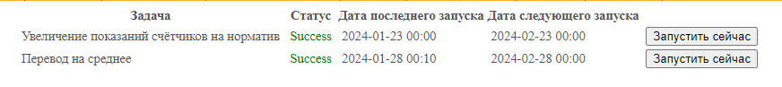 Страница отображает статус периодических задач в ЕМИР ЖКХ