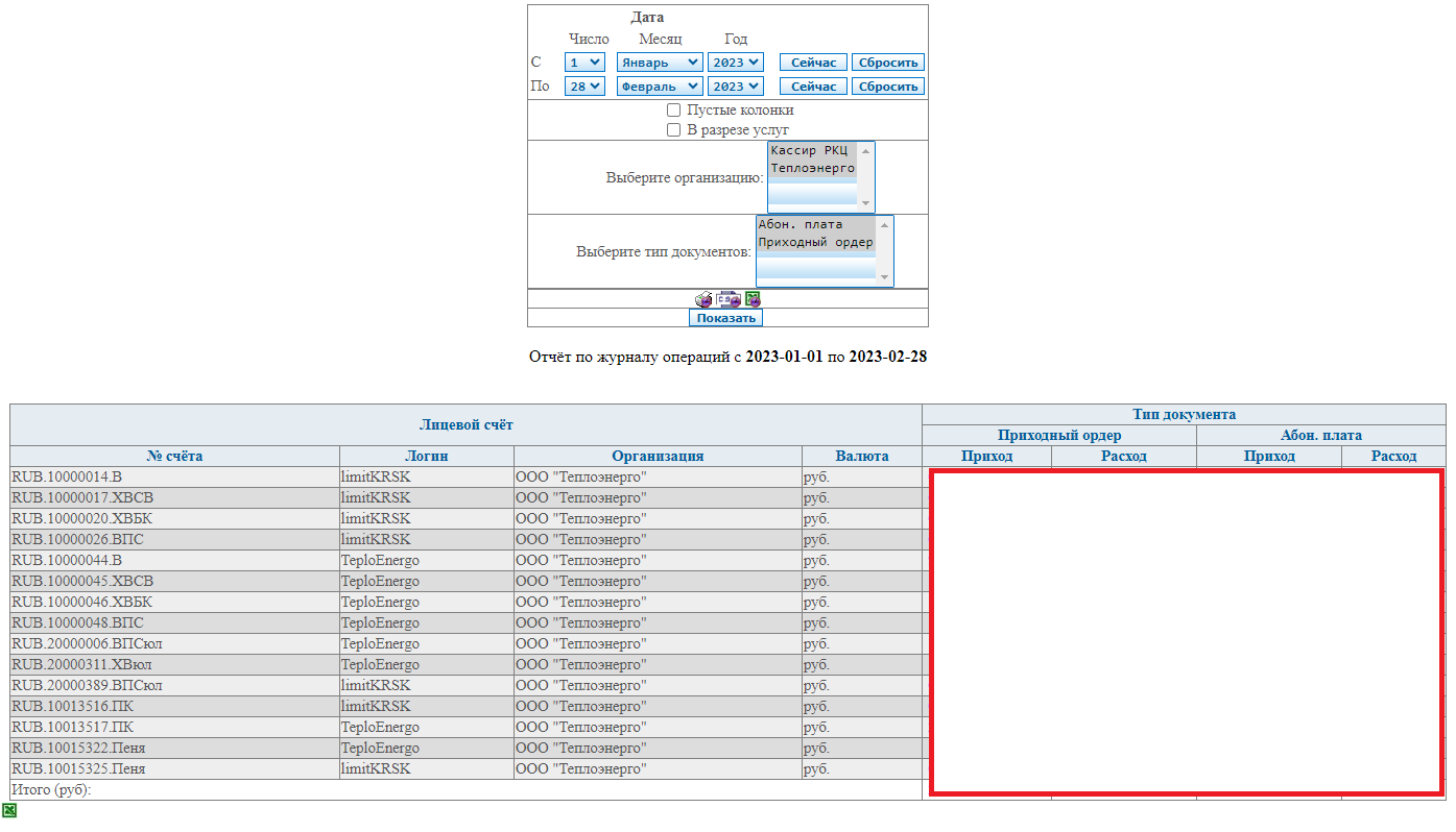 Интерфейс отображает сводную информацию по движению средств.