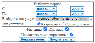 Показания счетчиков за период