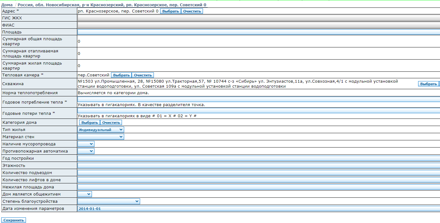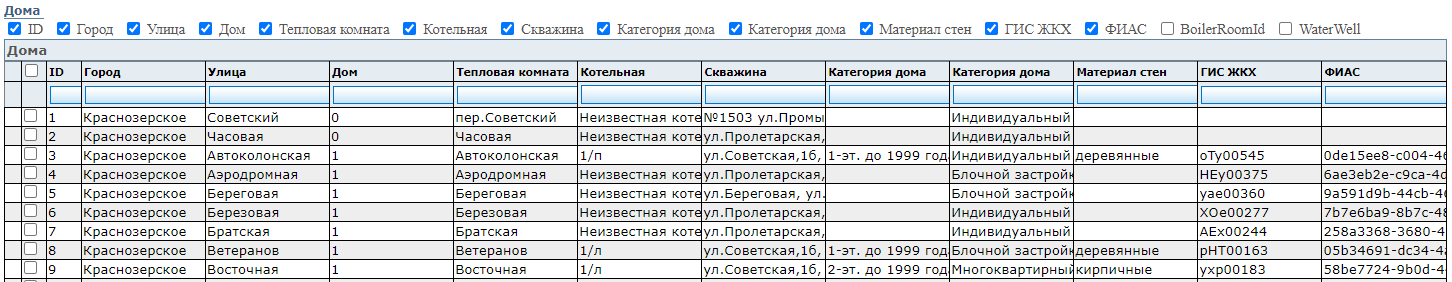 Данные о домах