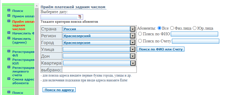 Интерфейс оплаты задним числом функционально эквивалентен приёму оплаты, но дополнительно позволяет выбрать дату, когда был принят платёж.