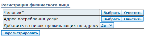 Интерфейс позволяет зарегистрировать нового потребителя услуг (абонента) по адресу.